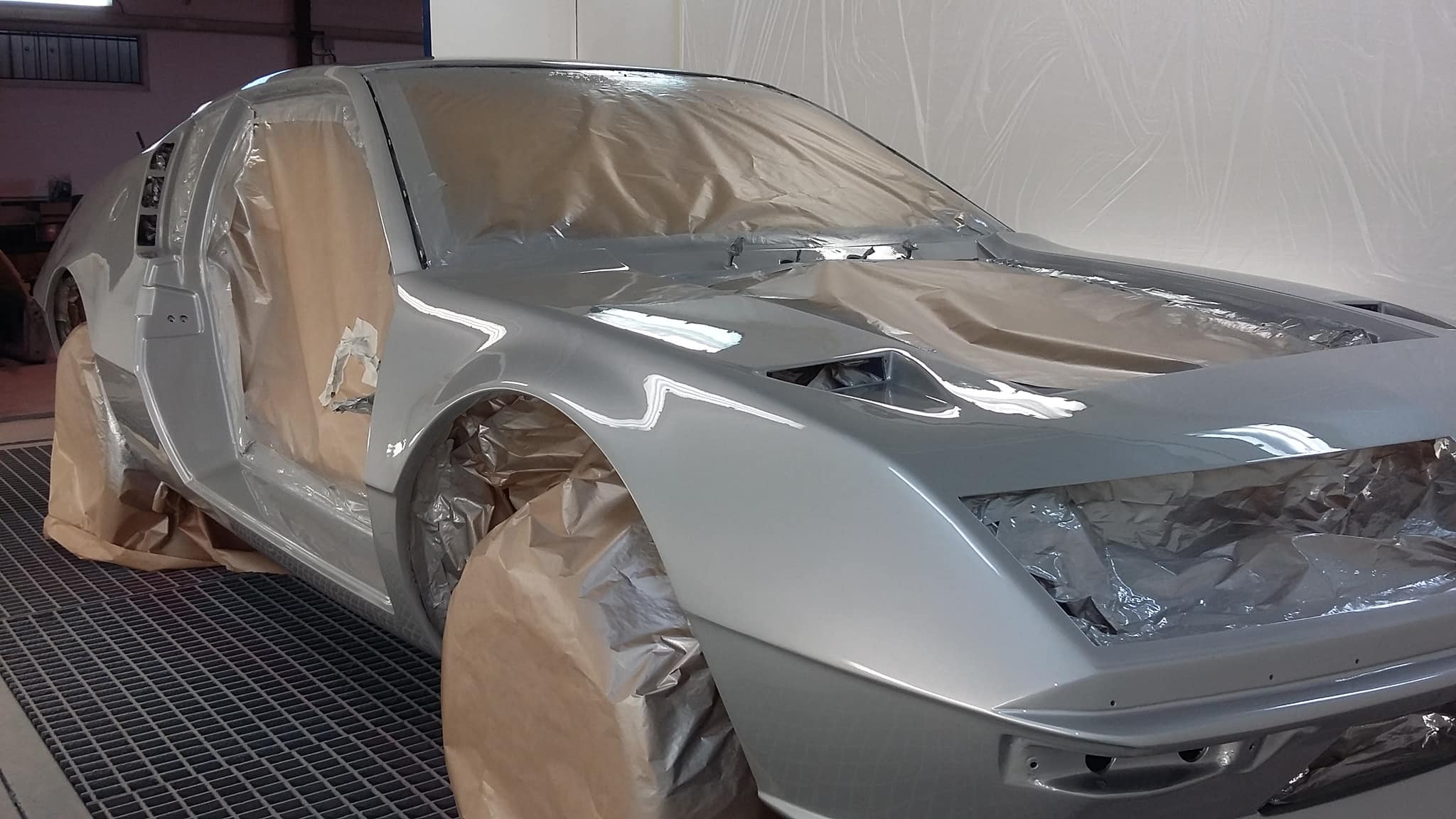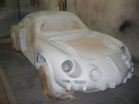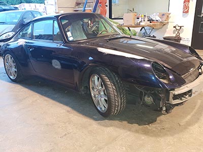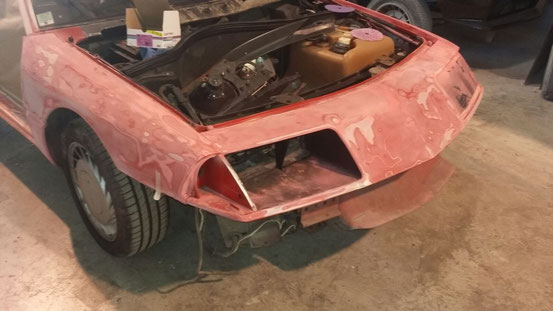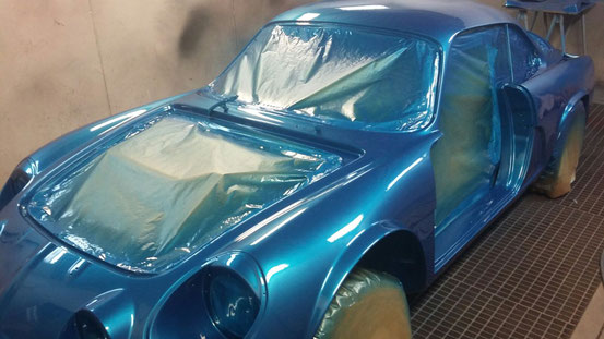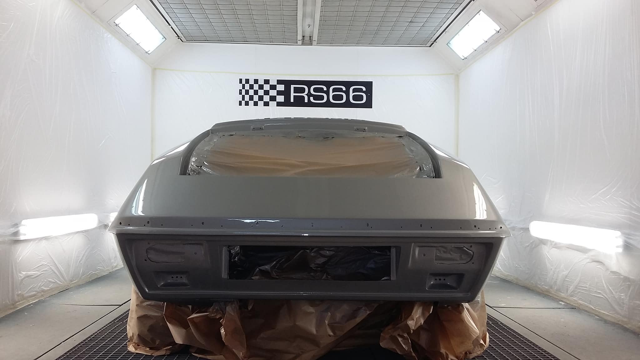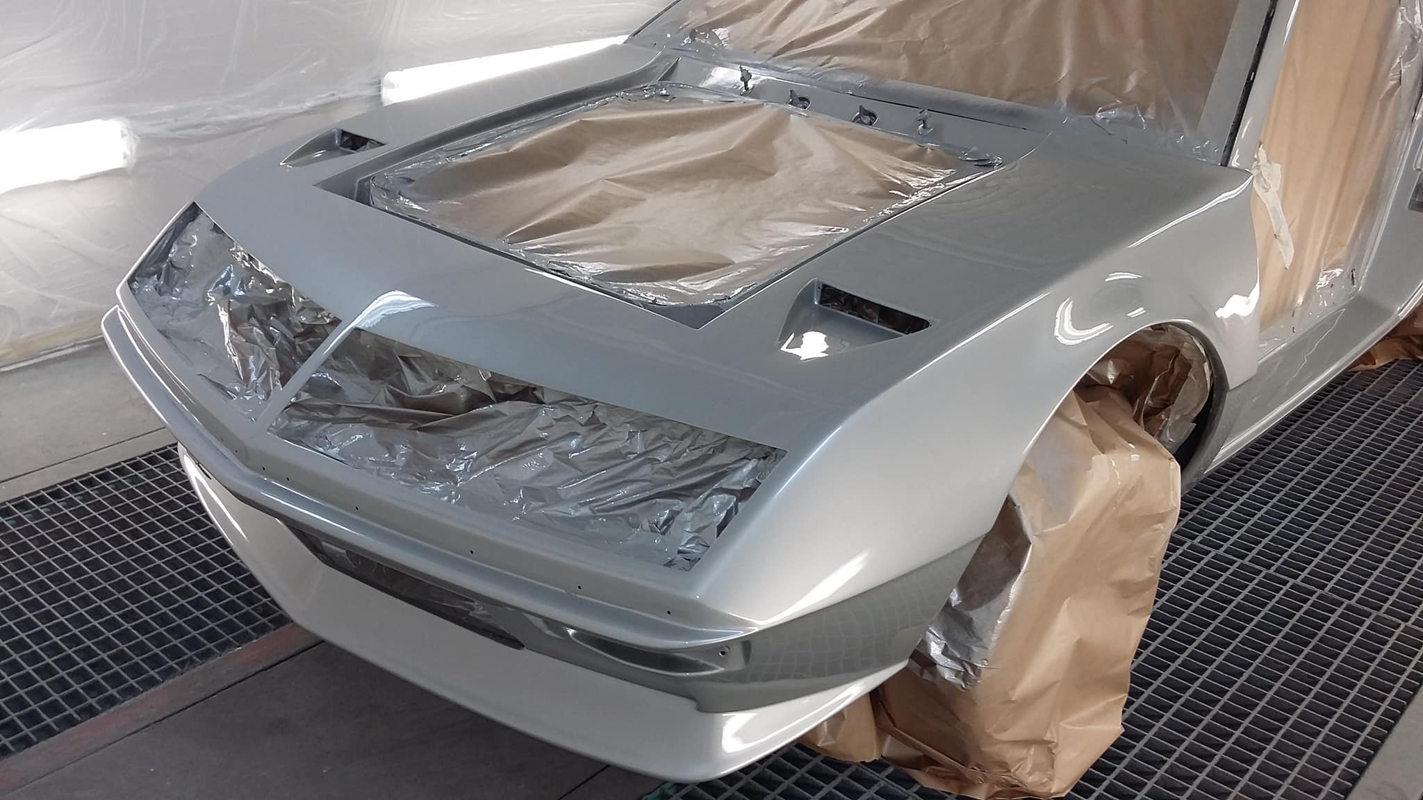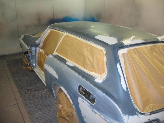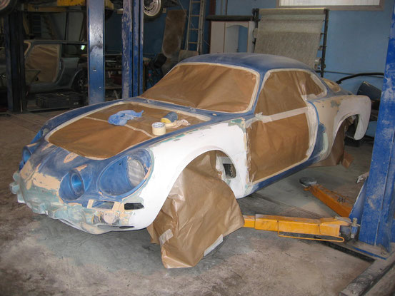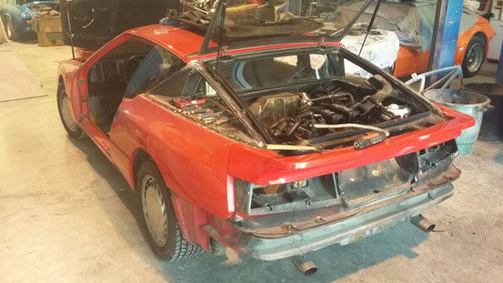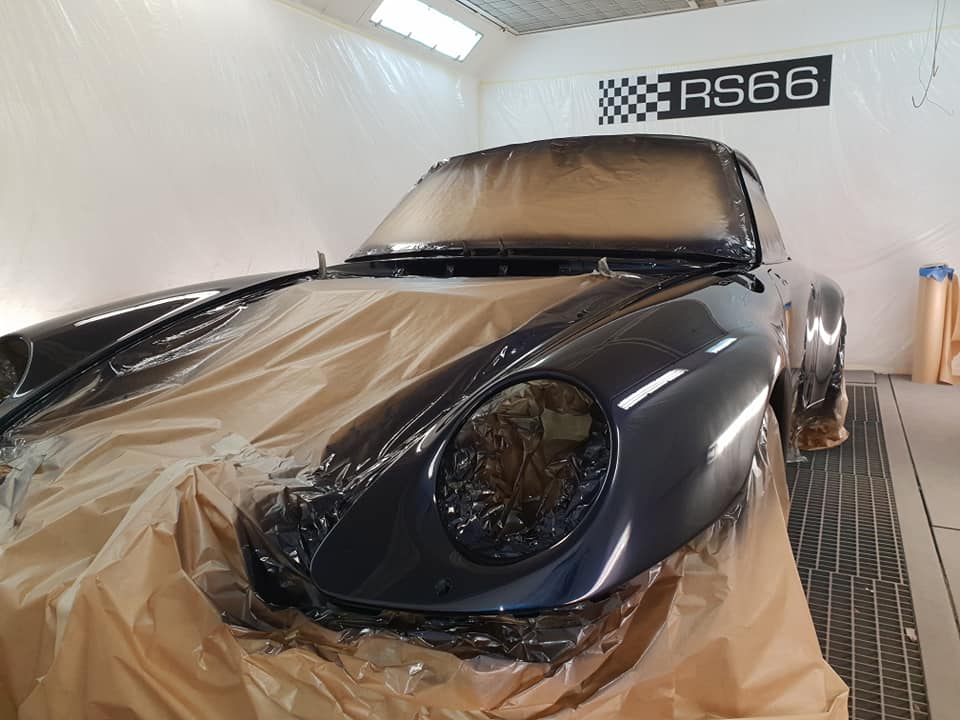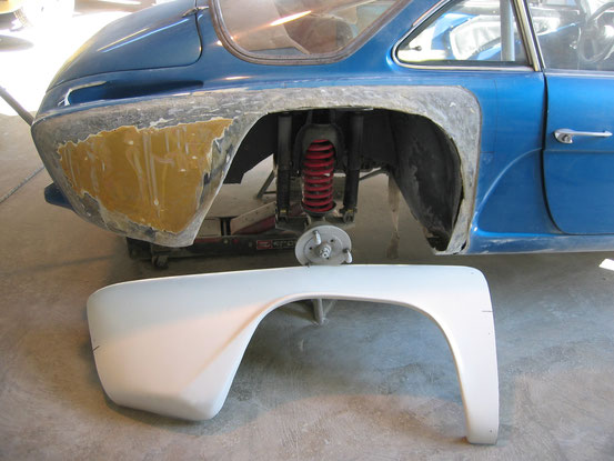 L'auto est préparée pour faire de la compétition et équipée d'ailes bulles. L'idée est de la remettre dans sa configuration d'origine et de lui retirer son aspect racing.