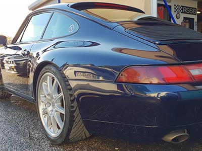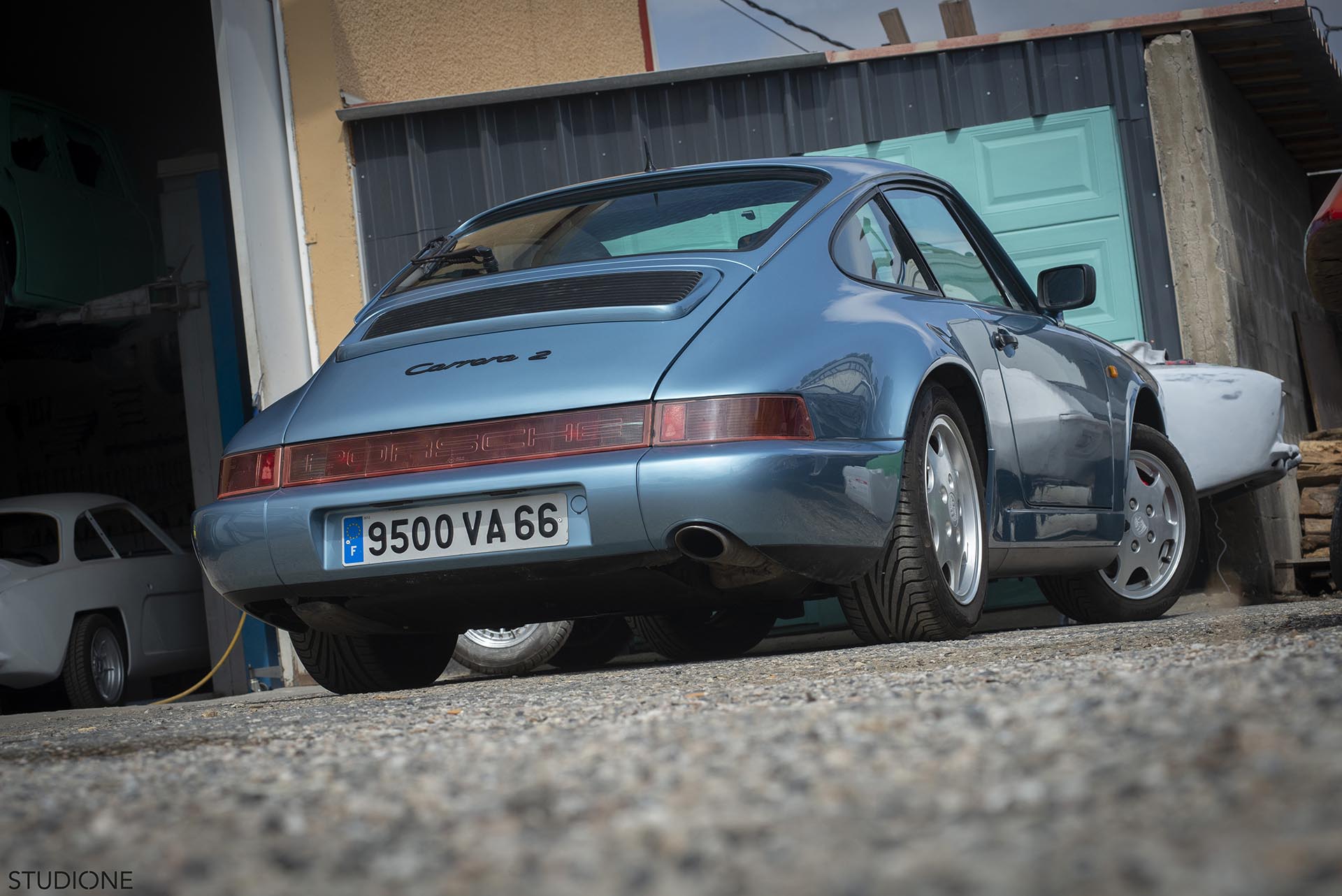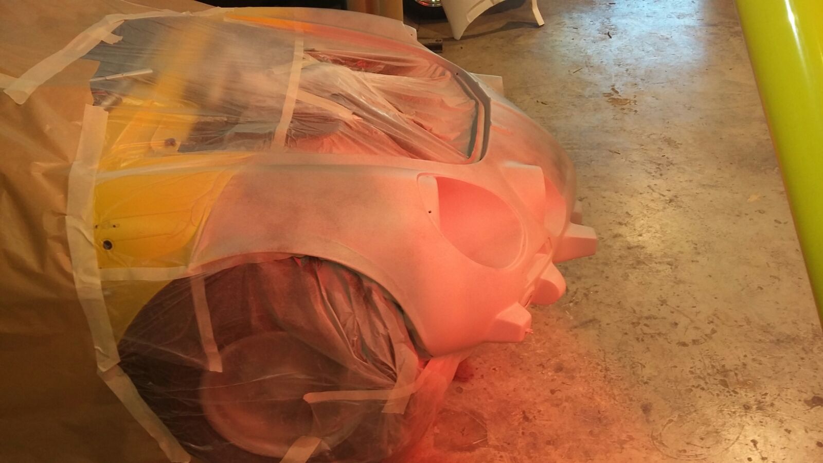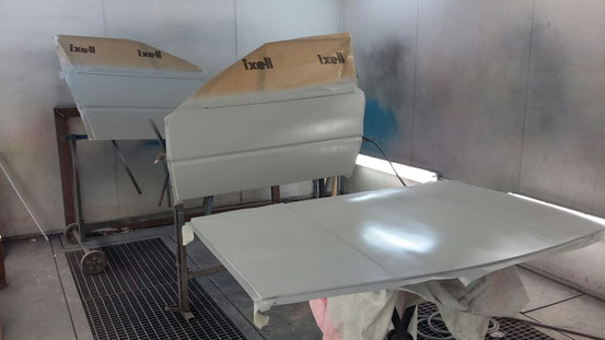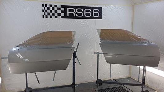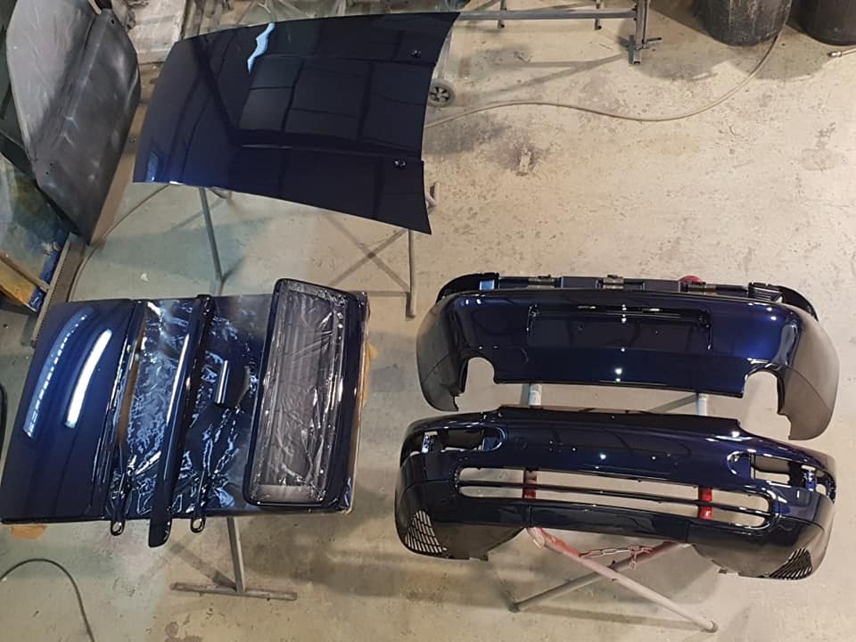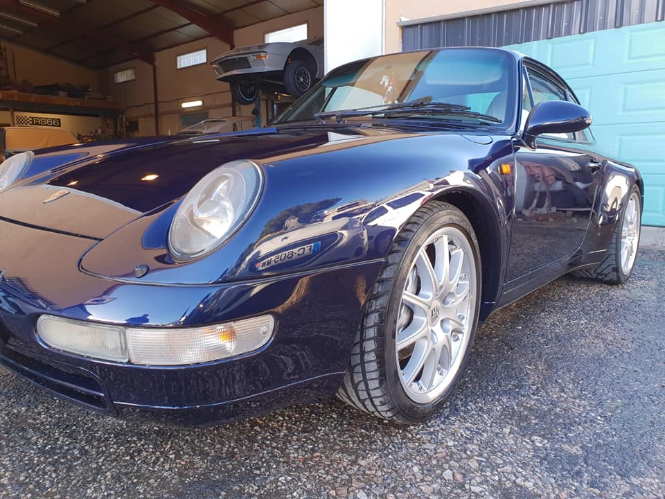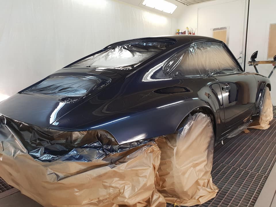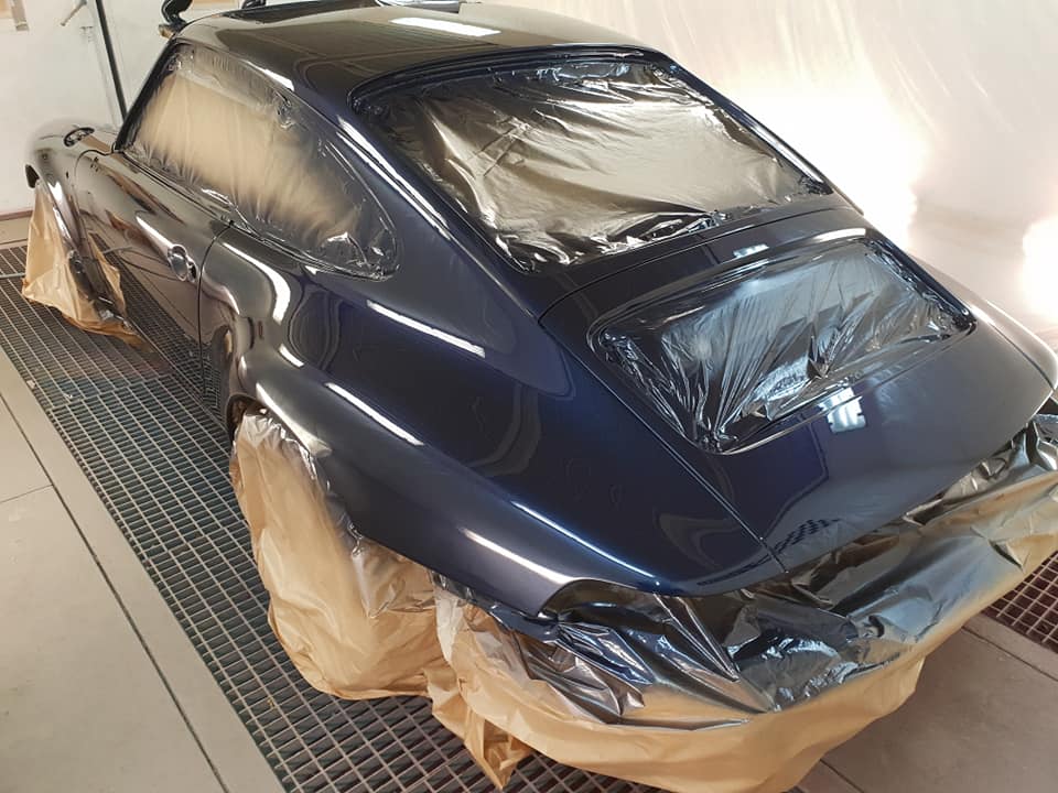 L'auto est préparée pour faire de la compétition et équipée d'ailes bulles. L'idée est de la remettre dans sa configuration d'origine et de lui retirer son aspect racing.