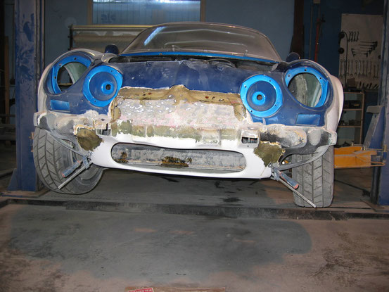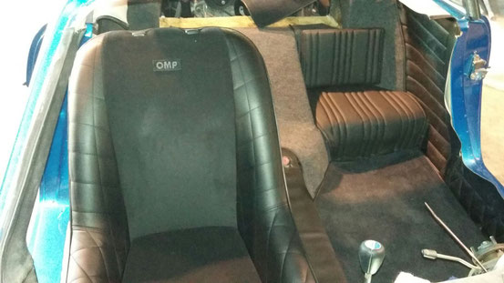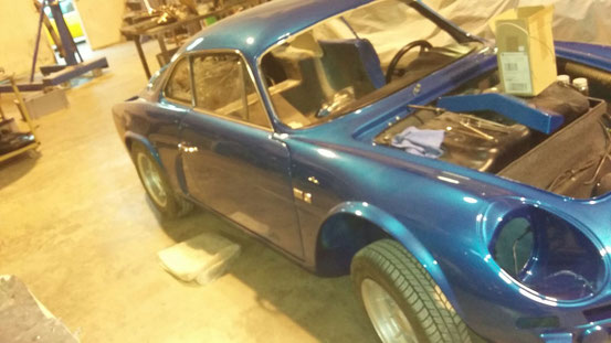 En plus des modifications de carrosserie et d'un retour aux ailes plates, l'intérieur est à reprendre entièrement. Le faisceau électrique est à refaire également. Une restauration moteur et boite est aussi au programme.
