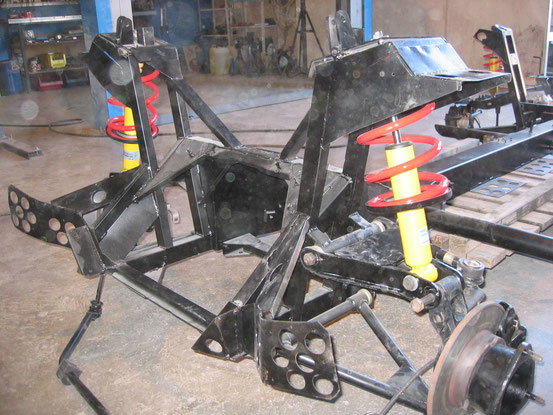 Le châssis est en mauvais état. La corrosion a fait son oeuvre. De plus, la suspension arrière droite est arrachée. Il faut donc décoquer et faire l'inventaire des dégats ...